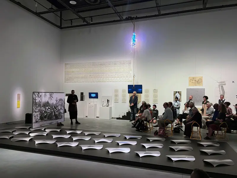 An 18-month exhibition reframing our relationship with digital devices. Features Brown’s new work Reverb (2025–26) which uses traditional Sāmoan siapo (bark cloth) and Crip Theory to show how technology has always been a tool for Indigenous storytelling.