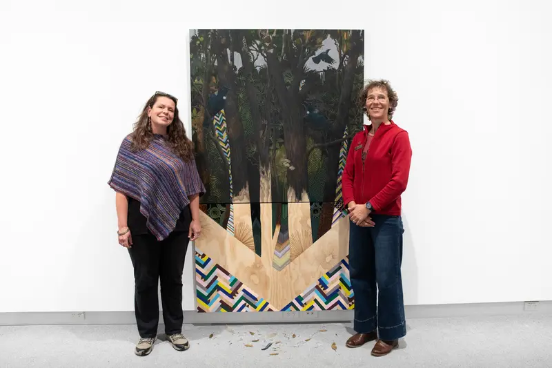 Now in its tenth year, the Zonta Ashburton Women’s Art Awards focuses on the art of emerging and mid-career artists who identify as women living and working in Waitaha Canterbury. Since this year’s exhibition opened on 6 March, visitors have been voting for their favourite work from the selection of finalists. 354 votes were received with Karen Boyce’s work Forest Vibes receiving 50 of these votes.